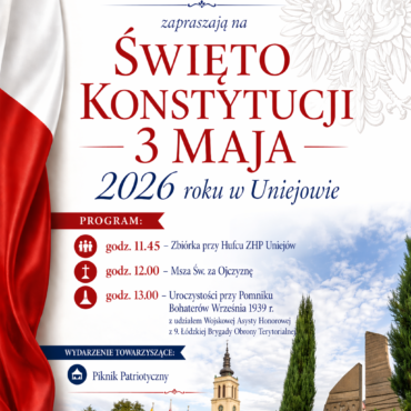 W dniu 3 maja 2026 roku Uniejów wypełni się biało-czerwonymi barwami i dźwiękami patriotycznych utworów. Burmistrz Miasta Uniejów oraz współorganizatorzy zapraszają mieszkańców do wspólnego świętowania 235. rocznicy uchwalenia Konstytucji 3 Maja.